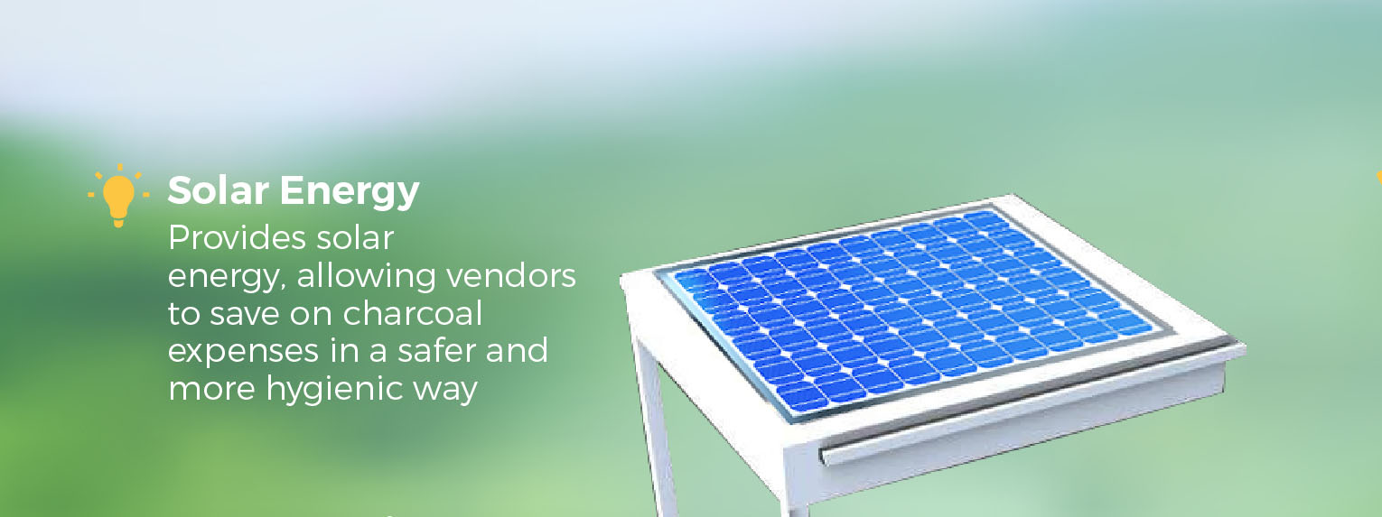 Musana Carts provide solar energy, allowing vendors to save on charcoal expenses in a safer and more hygienic way. This also offers capability for a fridge and other electronic resources at an affordable price.